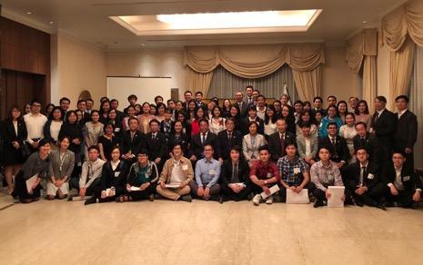 Các ứng viên nhận học bổng của Quỹ Toshiba quốc tế  trong một buổi nhận chứng nhận học bổng nghiên cứu tại Nhật